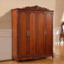 实木衣柜4门整体平拉门储物柜卧室家具欧式简约复古深色组装衣柜