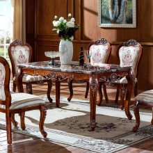 欧式奢华餐桌椅组合实木长方形大理石餐台美式新古典仿古6人饭桌