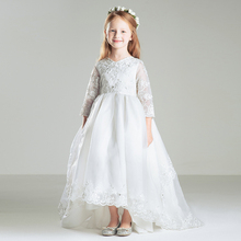 儿童礼服公主裙婚纱裙夏 女童钢琴演出服花童礼服长袖白色拖尾裙