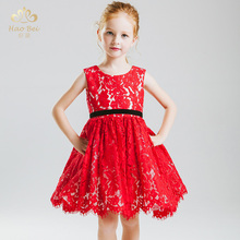 花童礼服女儿童礼服公主裙蓬蓬裙女童婚纱红色蕾丝连衣裙演出服夏