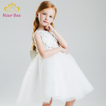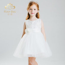 女童公主裙小花童礼服婚纱裙儿童礼服白色蓬蓬裙女童钢琴演出服夏