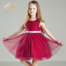 儿童礼服公主裙红色蓬蓬裙女童钢琴演出服花童主持人生日表演服夏