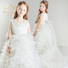 儿童钢琴演出服女童主持人礼服 花童公主裙婚纱礼服长拖尾晚礼服
