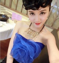 韩版抹胸裙修身紧身性感包臀立体花裹胸铅笔裙夜店抹胸连衣裙