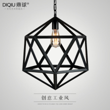 北欧创意loft复古工业风铁艺吧台单头餐厅个性菱形鸟笼艺术 吊灯
