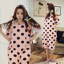 夏季韩版纯棉公主睡裙 女士圆点加大码宽松长款波点孕妇短袖睡衣