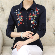 中老年全棉T恤女长袖上衣服妇女中年女装大码翻领妈妈春季打底衫