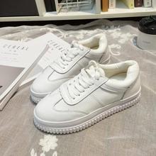 小白鞋女真皮新款系带厚底休闲鞋女松糕鞋百搭学生运动鞋女韩版潮