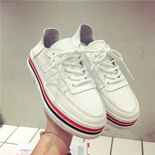 2017新款真皮厚底小白鞋女#系带百搭休闲板鞋松糕底白色运动鞋