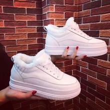2016秋冬新款真皮羊毛小白鞋平底系带休闲鞋加绒毛毛鞋厚底板鞋女