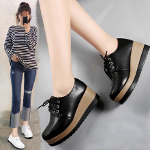 2017春季新款厚底松糕鞋真皮摇摇单鞋百搭休闲护士鞋坡跟单鞋四季