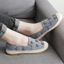 弄里人佳新款亚麻渔夫乐福鞋大号40 42圆头平底单鞋大码女鞋41-43