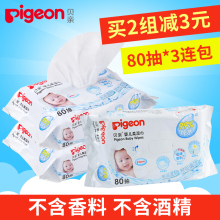 贝亲湿巾 婴儿柔湿巾80片3包补充装 宝宝柔湿巾 新生儿湿纸巾80抽