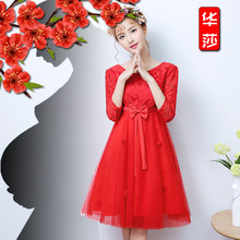 孕妇敬酒服高腰2017新款春季中袖红色大码中长款结婚新娘礼服显瘦