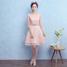 伴娘礼服女2017新款夏季粉色中长款宴会学生毕业小礼服连衣裙短款