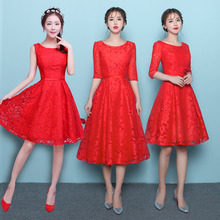 新娘敬酒服秋冬季回门结婚礼服中袖女晚礼服中长款红色连衣裙短款