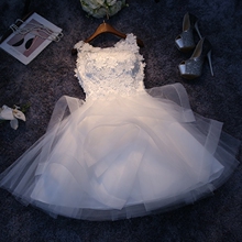 伴娘服2017新款白色婚纱学生毕业小礼服短款连衣裙晚礼服蓬蓬裙女