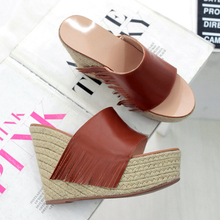 2017新款百搭防水台欧美凉鞋超高跟夏女鞋真皮流苏坡跟厚底凉拖鞋