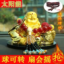 创意太阳能汽车香水座弥勒佛 车内饰品摆件车载香水保平安扇子佛