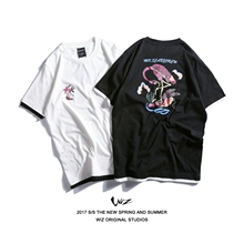 夏装日系潮牌个性创意图案丹顶鹤印花短袖tee街头潮男原创纯棉T恤