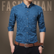 格子长袖衬衫男发型师衬衣年轻修身韩版2017春夏季青年英伦印花寸