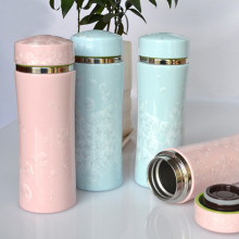 高档陶瓷玉冰花保温杯 情人节新婚礼品杯茶杯 真空不锈钢情侣杯