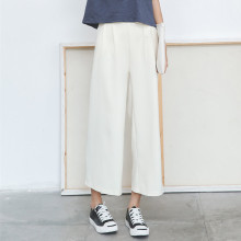 外贸原单百搭大码高腰休闲裤九分阔腿裤女纯色松紧腰直筒裤学院风