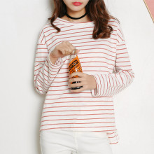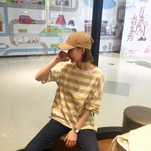 外贸原单2016夏宽松简约t恤女纯棉短袖细横条纹T竹节棉韩长袖上衣