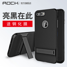ROCK苹果7手机壳新款防摔硅胶iPhone7plus保护套挂绳带支架7p亮黑