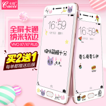 卡绮步步高X7钢化膜vivoX7plus卡通全屏彩膜防爆玻璃膜X7纳米彩膜