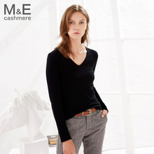 M&E2015新款100%纯羊绒衫女v领纯色修身打底衫套头毛衣针织衫