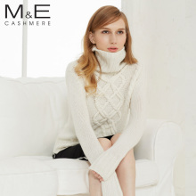 M&E秋冬100%纯羊绒衫女半高领提花套衫纯色麻花中厚毛衣