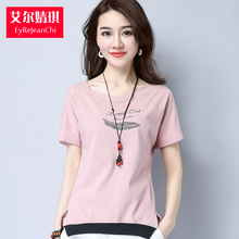 刺绣t恤女短袖全棉宽松拼接民族风上衣夏装2017新款妈妈休闲体恤