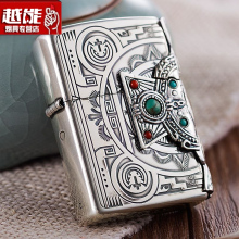打火机zippo正版 日版 镀银三面环绕雕刻 绿松石贴章 印第安神灵