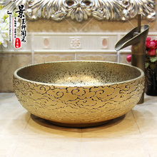 打折包邮景德镇陶瓷洗脸盆面盆台上盆艺术盆洗手盆镀金祥云金花朵
