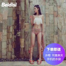 比基尼三件套 性感时尚流苏小胸聚拢罩衫外搭沙滩度假温泉泳衣女