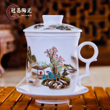 冠昌景德镇正品陶瓷茶杯四件杯个人杯会议杯带过滤青花瓷茶杯包邮