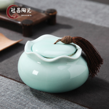 冠昌景德镇陶瓷茶叶罐中号青瓷茶罐密封罐子包邮浮雕莲花图案设计
