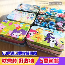 拼图铁盒60片装木质佩佩猪小妹小马宝莉男女孩幼儿童益智早教拼版