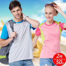TECTOP户外夏季运动快速干t恤男拼色短袖圆领T恤汗衫女半袖透气