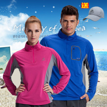 TECTOP户外轻薄速干T恤衫男长袖立领骑行t恤女防晒透气钓鱼登山服