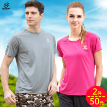 TECTOP户外夏男短袖速干T恤衫女圆领运动情侣款t恤轻薄透气快干衣