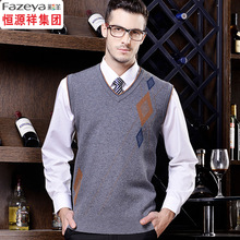 恒源祥集团中老年男士V领羊毛背心男纯羊毛衫鸡心领马甲加厚毛衣