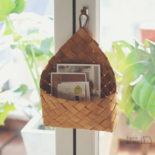 Fan home日式原木木片三角挂篮杂物收纳篮 挂式文件书本壁挂篮