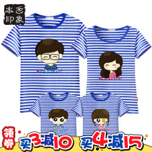 本色印象韩版三口亲子装夏装全家装新款短袖一家四口上衣母女装夏
