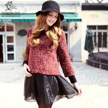 CERONDIZ2016秋装新款蕾丝拼接打底衫孕妇裙纯色针织长袖连衣裙
