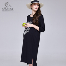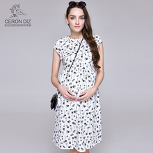 CERON DIZ2016孕妇装夏装连衣裙欧美时尚淑女宽松大码印花哺乳衣