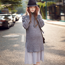 萨琳2016新品孕妇春秋装毛衣连衣裙时尚欧美假两件中长款孕妇装潮