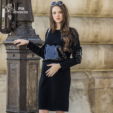 萨琳2016孕妇装秋冬装孕妇连衣裙长袖中长款欧美时尚大码宽松毛衣