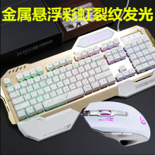 包邮炫光金属发光键盘鼠标套装机械手感裂纹背光电竞游戏网吧键鼠